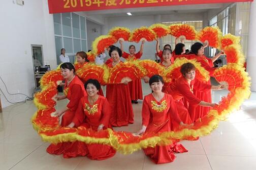 的员工们精心准备的节目依次上场。在自编自导的扇子舞华丽开场后,紧接着就迎来了让人耳熟能详的大合唱《九月九》,熟悉的旋律一出来,老人们都情不自禁的跟着一起唱了起来。最后,《小妹送情郎》、《荷塘月色》等广场舞金曲串烧,将活动的气氛推向高潮,也让老人们看的十分欢乐。
