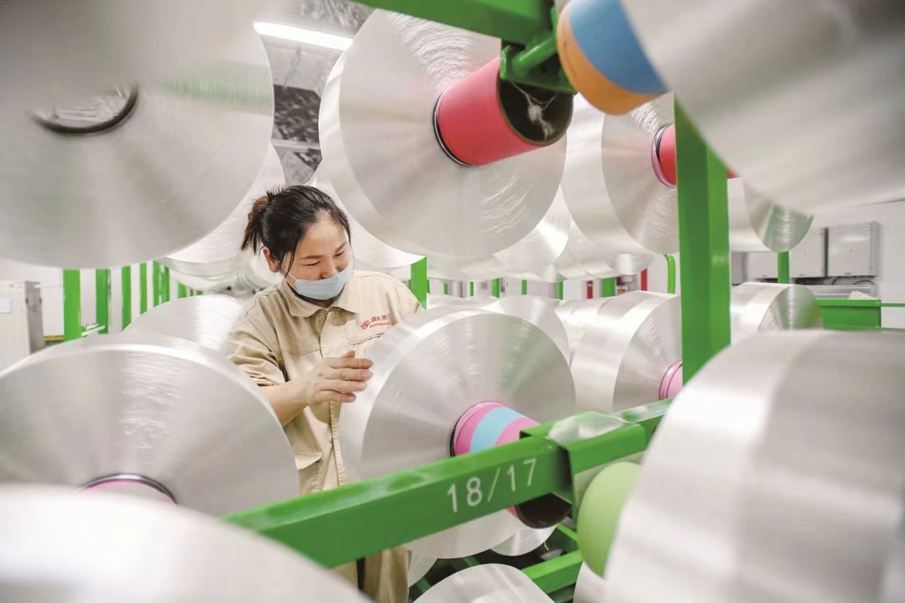 走进宿迁泗阳县盛虹新材料产业园,在芮邦科技的生产车间里,废弃瓶片经过加工生产出高质量的再生纤维,相比传统生产工艺,不仅节约能耗、实现“变废为宝”,且再生纤维的品质与性能不逊色于原生纤维。目前盛虹已成为全球最大的再生纤维生产基地。