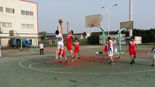 建设,搭建员工沟通平台,丰富员工精神文化生活,7月15日下午,盛虹科技和盛虹热电篮球队在科技生活区篮球场上演巅峰对决,最终盛虹科技以77:54战胜对手。