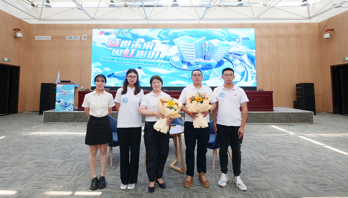 人力资源部副总监龚仁谱做动员讲话。各位领导对新虹人的到来表示热烈欢迎并提出了真挚的期望:期待新虹人们争当新时代的勇敢追梦人,在盛虹的舞台上实现自己的人生抱负。