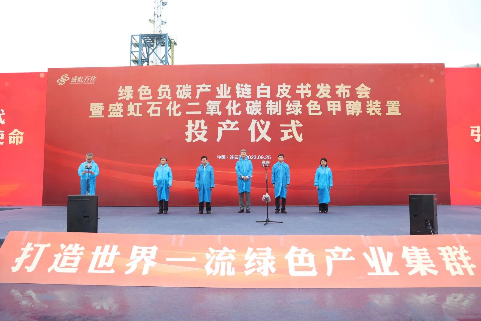 副总裁钱新华、斯尔邦石化总经理杨军出席投产仪式。