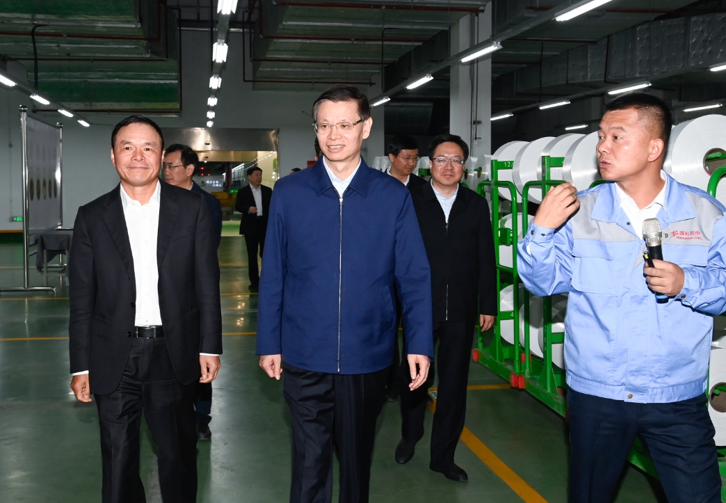 许昆林对盛虹坚持创新驱动、积极落实绿色发展理念给予肯定。他勉励盛虹积极抢抓“双碳”机遇,加快“智改数转网联”,向产业链上下游延伸、向价值链高端迈进,引导产业串珠成链、聚链成群、集群成势,助力当地产业能级提升、全省强链补链延链。