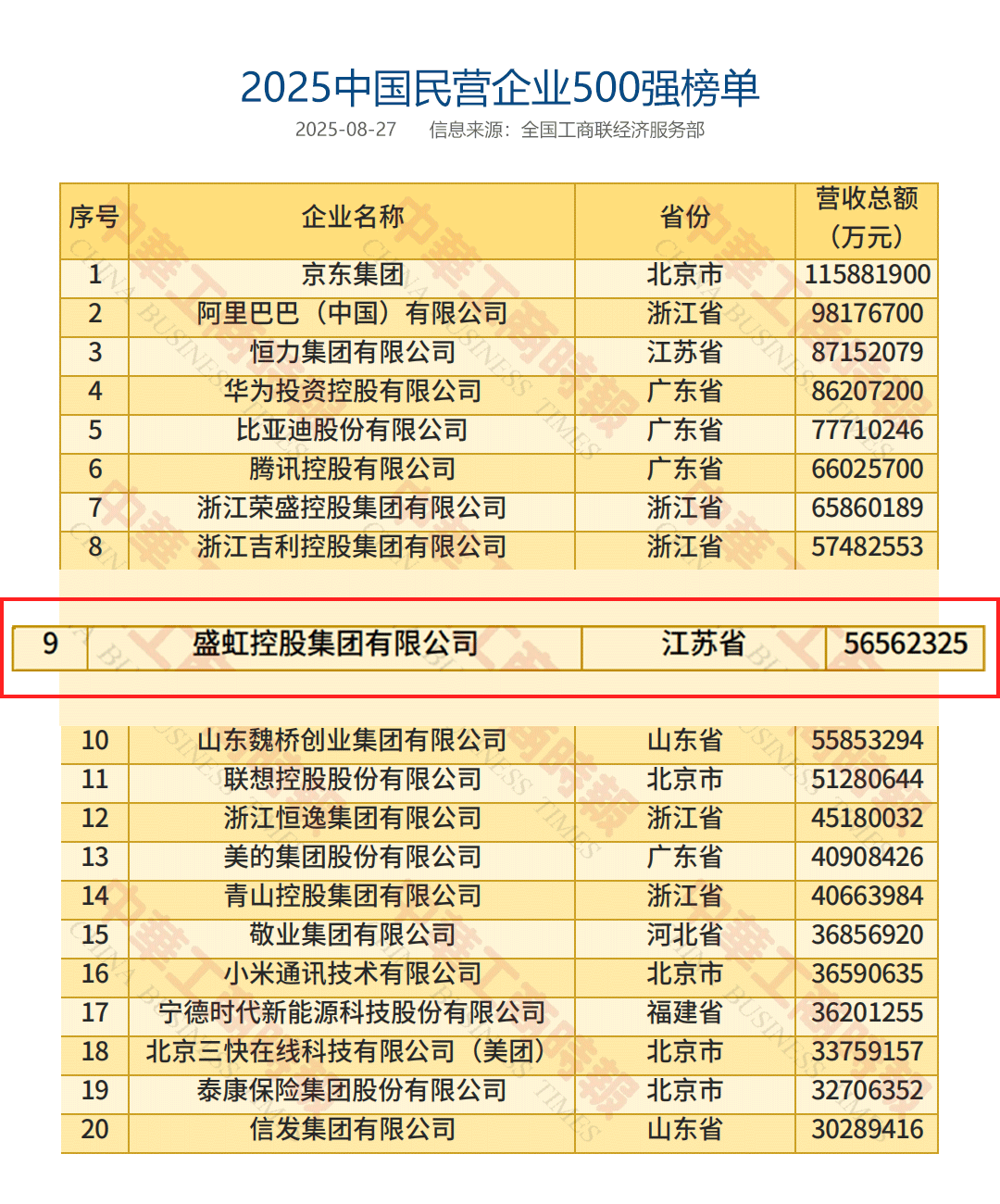 8月28日,全国工商联发布“2025中国民营企业500强”榜单,高清无码